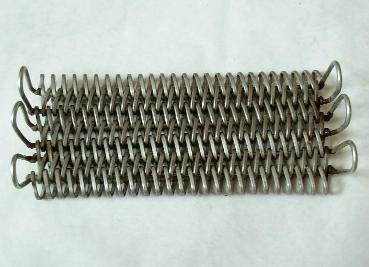 產品介紹 螺旋金屬網帶螺旋網帶通常應用于速凍食品行業,是速凍機必不可少的配件之一,它不同于普通編織成的金屬網帶,這種網帶是由絲徑較粗的不銹鋼直條,U型鏈條以及不銹鋼小帽組合而成。無需人工編織,主要是焊接工序較多,螺旋網帶的焊接有一定的難度,需要把不銹鋼直條,U型鏈條和小帽三樣用一個焊點焊接,焊接時電流需調整到較大程度,焊接處必須結實牢固,并且外觀要整齊美觀。螺旋網帶由于用于食品行業較多,必須要保證其外觀的清潔度,因此通常在產品制造完成后進行清潔處理,主要的方法有使用特制的除油劑,進行酸洗或者電解拋光。