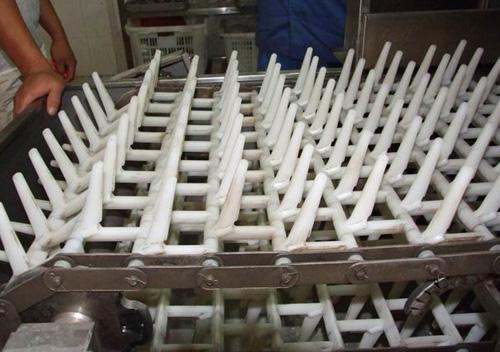 上圖為常見的頂針式洗碗機網帶、采用食品級聚酯材料加鋼絲編織而成。